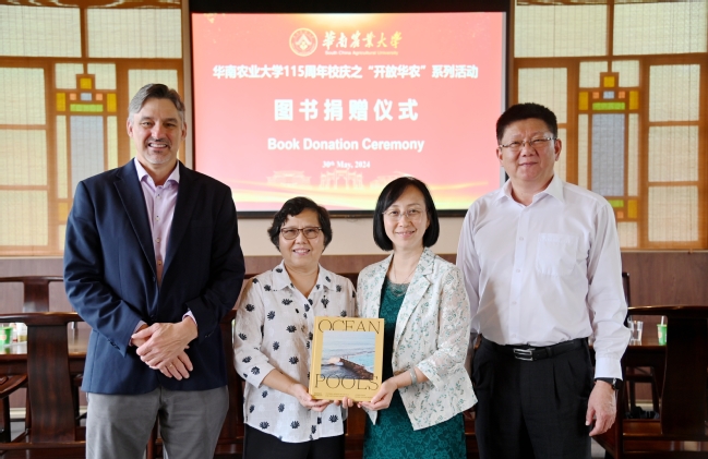 会前,代表团一行参加了九州·体育115周年校庆“开放华农”主题活动图书捐赠仪式。纽卡斯尔大学环境与生命科学学院院长Clovia Holdsworth向广东华农大资产经营有限公司赠送了Ocean Pools图集。